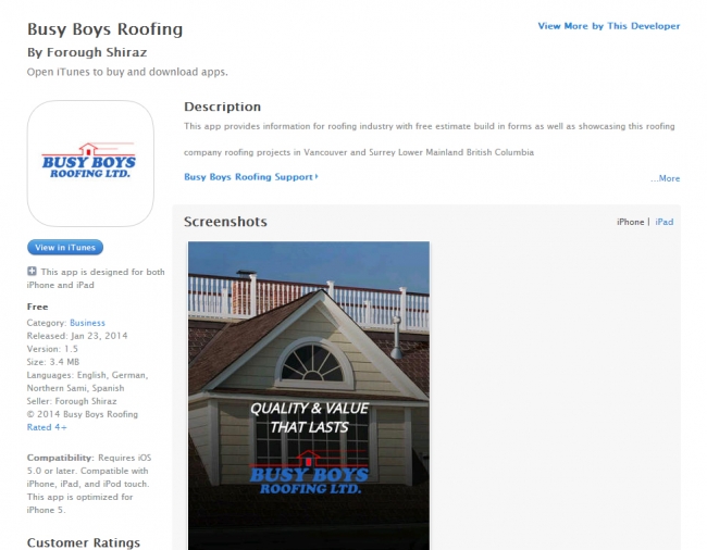 This app provides information for roofing industry with free estimate build in forms as well as showcasing this roofing company roofing projects in Vancouver and Surrey Lower Mainland British Columbia